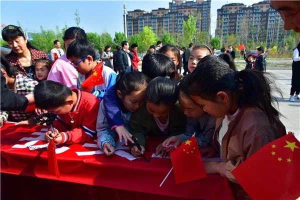開(kāi)幕儀式尾聲廣大讀者和學(xué)生紛紛在萬(wàn)米長(zhǎng)卷上簽下自己的名字和喜愛(ài)的圖書(shū),以此來(lái)表達(dá)對(duì)圖書(shū)的熱愛(ài)。