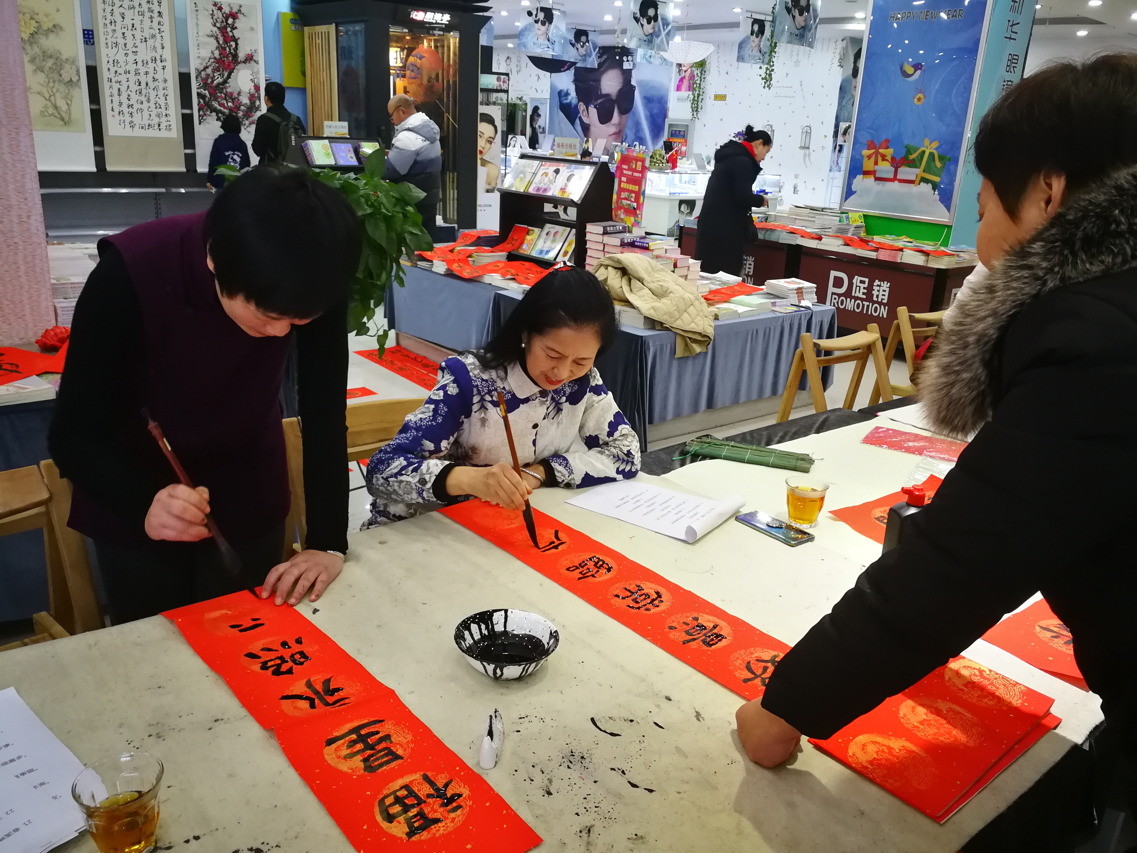 元月12日,新鄉(xiāng)市店在購(gòu)書中心舉辦了“春聯(lián)有范兒”為主題的新鄉(xiāng)市女子書畫家協(xié)會(huì)義寫春聯(lián)活動(dòng)。活動(dòng)共邀請(qǐng)了新鄉(xiāng)市十余名女性書法家現(xiàn)場(chǎng)為讀者義務(wù)書寫并贈(zèng)送春聯(lián)活動(dòng),當(dāng)天購(gòu)書讀者憑小票均可領(lǐng)取一份包含墨香和祝福的春聯(lián),同時(shí),貧困職工、勞模、環(huán)衛(wèi)工人均可優(yōu)先領(lǐng)取書法家手寫春聯(lián)一副。據(jù)了解,活動(dòng)當(dāng)天,來自新鄉(xiāng)市女子書畫家協(xié)會(huì)的書法愛好者現(xiàn)場(chǎng)揮毫潑墨,共計(jì)送出福字170余幅,春聯(lián)300余對(duì)兒,為廣大市民送去屬于新華人的新春祝福。