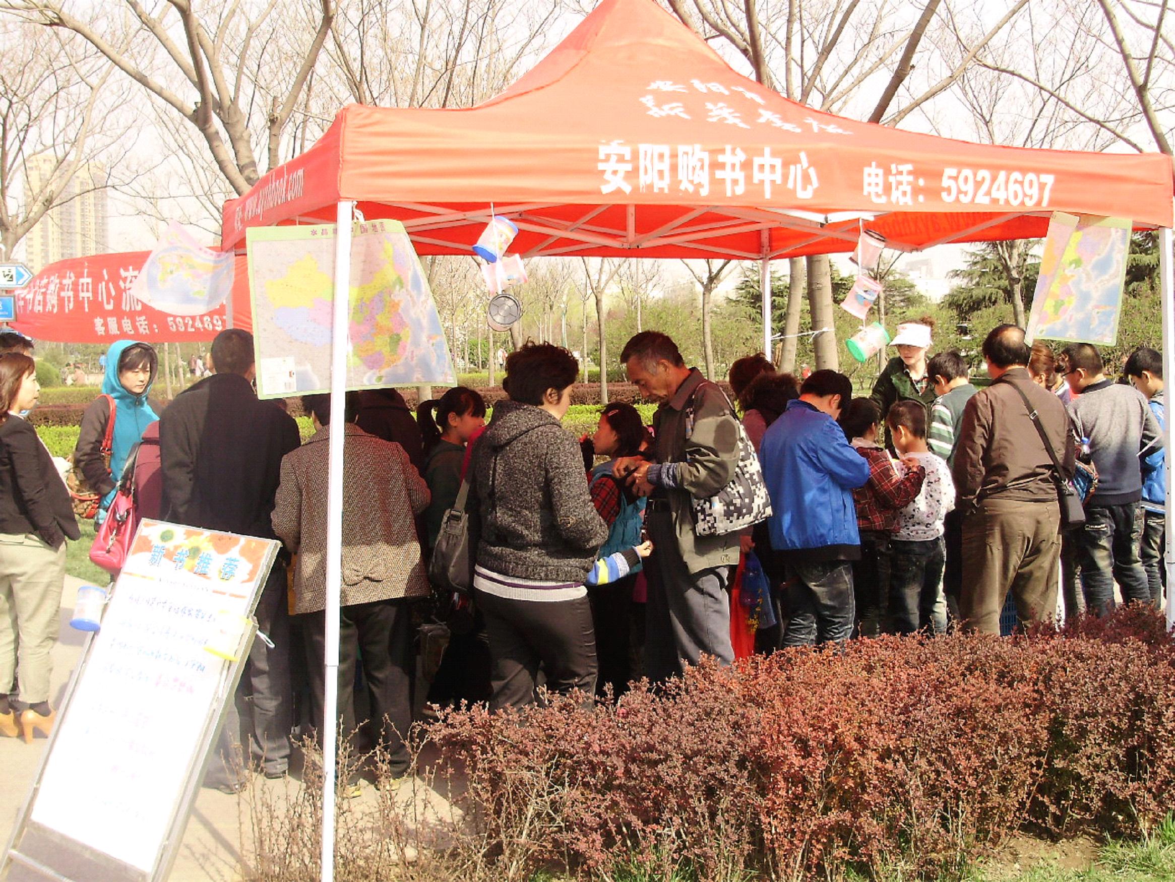 為給力全民閱讀,挖掘市場潛力,提升圖書銷售,在2012年國際兒童圖書日期間,安陽市新華書店購書中心積極與安陽市少年兒童圖書館和安陽市易園聯(lián)合,精心挑選圖書組成流動(dòng)書店,利用清明節(jié)三天假期,到兩館廣場和易園為廣大讀者朋友提供優(yōu)惠售書服務(wù)。
