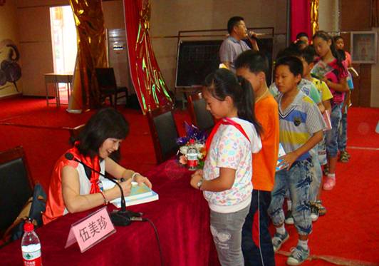 9月5日—6日,由河南省新華書店發(fā)行集團(tuán)有限公司與浙江少年兒童出版社聯(lián)合策劃的著名兒童文學(xué)作家伍美珍校園巡講活動,在汝南、舞鋼、開封等地成功舉辦,累計拉動相關(guān)圖書銷售3000多冊,實現(xiàn)了預(yù)期營銷目標(biāo)。        伍美珍被稱為“陽光姐姐”,她曾是“陽光姐姐熱線”主持人,專為小讀者排憂解難。自2000年起,她在內(nèi)地和港臺三地共出版了70余部少兒題材的小說和報告文學(xué)作品,曾獲文化部“蒲公英少兒讀物獎”及新聞出版總署“全國優(yōu)秀少兒圖書獎”“冰心兒童圖書獎”等。為了開展好本次活動,切實通過名家效應(yīng)提升新華品牌,拉動一般書銷售,發(fā)行集團(tuán)公司非常重視本次巡講活動的方案策劃、行程安排、具體落實等方面工作,早在6月份就已經(jīng)推出了方案細(xì)則,后又經(jīng)過多次與基層書店、出版社以及伍美珍本人的溝通商量,最終保證了伍美珍校園巡講簽售活動的圓滿舉辦。   |