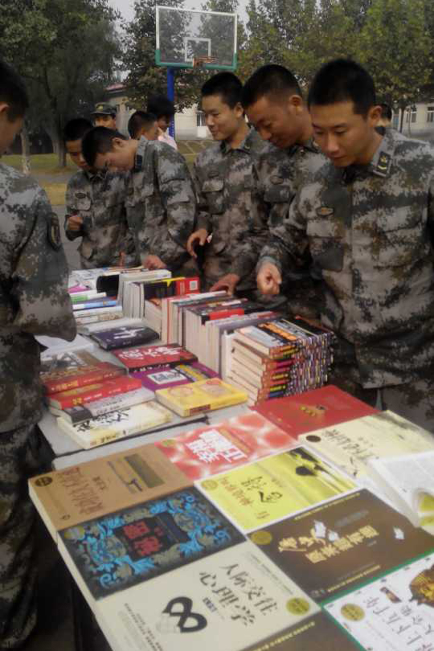 日前,為豐富武警官兵的精神文化生活,滿足廣大官兵的閱讀需求,平頂山市店抽調(diào)業(yè)務(wù)骨干人員利用周末時間,組成“平頂山市新華書店售書服務(wù)隊”,到該市武警中隊開展送書到軍營活動。服務(wù)隊精心挑選了具有針對性的貼近部隊實(shí)際的生活、文藝、社科、科技類圖書800種,900多冊,以最大的優(yōu)惠讓利給官兵,并以優(yōu)質(zhì)的服務(wù)受到部隊官兵的熱烈歡迎。