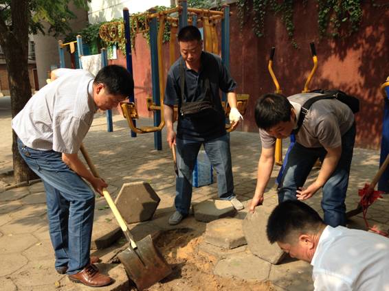 | 落實(shí)整改  務(wù)求實(shí)效 發(fā)行集團(tuán)五支部開展義務(wù)勞動 改進(jìn)服務(wù)工作 為踐行黨的群眾路線,改進(jìn)服務(wù)工作,積極落實(shí)部分退休職工提出的規(guī)范家屬院自行車停放秩序、美化家屬院環(huán)境的訴求, 5月21日下午3點(diǎn),發(fā)行集團(tuán)公司第五黨支部組織所屬黨員和職工自帶鐵锨、掃帚等勞動工具,來到位于司家莊的發(fā)行集團(tuán)家屬院開展義務(wù)勞動。此次勞動的主要內(nèi)容為:為家屬院自行車合理規(guī)劃存放區(qū)域,貼存放區(qū)域標(biāo)牌,劃存放標(biāo)志線,對家屬院內(nèi)凸凹不平的地方進(jìn)行平整,清理破舊自行車,美化居住環(huán)境。在勞動過程中,大家迸發(fā)出極大的工作熱情,現(xiàn)場一派熱火朝天的景象。他們不怕臟,不怕累,當(dāng)時(shí)烈日炎炎,很快汗水就浸濕了衣服,但看著鋪平的道磚、規(guī)劃有序的自行車停放區(qū)域、美化的居住環(huán)境,每名黨員、職工都感到很欣慰,他們用實(shí)際行動展現(xiàn)了黨員的風(fēng)采,為職工群眾生活帶來了便利。