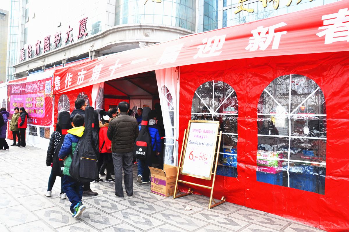 此次活動(dòng)區(qū)別以往,一是購置了300平方米篷房,給廣大讀者提供一個(gè)更為舒適的閱讀環(huán)境。二是新增兩臺(tái)結(jié)賬計(jì)算機(jī),為讀者節(jié)省了排隊(duì)結(jié)賬時(shí)間。三是開通了微信公眾平臺(tái),多處放置“二維碼”掃描貼,廣大讀者可通過微信公眾號(hào)“焦作市新華書店”,及時(shí)了解書店相關(guān)信息,共同參與各類活動(dòng),為大家提供了一個(gè)線上互動(dòng)平臺(tái)。四是設(shè)置了書法交流區(qū),配備了相應(yīng)的文房四寶及水寫布,供廣大書法愛好者交流心得,切磋技藝。五是改變了營業(yè)時(shí)間。今年,迎新春書市的營業(yè)時(shí)間也由最初的晚6點(diǎn)半,延長至晚8點(diǎn),大大提高了讀者閱讀時(shí)間。