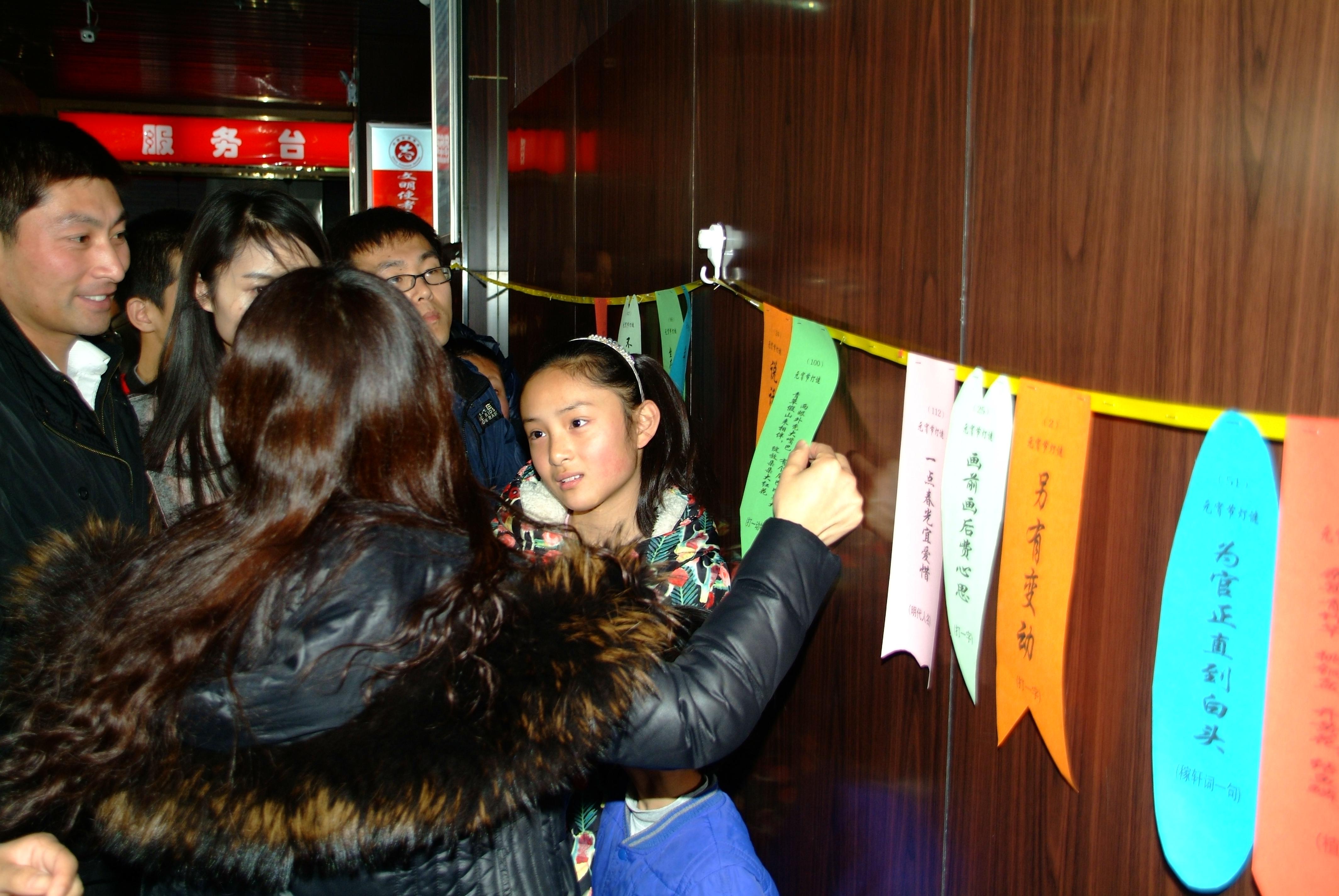 活動現(xiàn)場設(shè)置了100余幅謎面,選用的謎語內(nèi)容集知識性、趣味性于一體,既貼近生活,又充滿文化色彩,謎語形式豐富多樣,獎品新穎,極大地拉近了書店與讀者的距離。許多小讀者在家長的陪伴下踴躍參加,他們或駐足思考,或與家長討論。猜對燈謎的人,喜悅之情溢于言表,猜錯的人也毫不氣餒,越戰(zhàn)越勇。每個人臉上都堆滿了快樂的笑容,現(xiàn)場氣氛熱烈。僅半個小時(shí),150份獎品盡被讀者收入囊中。