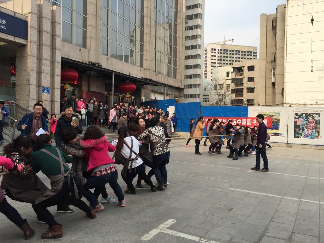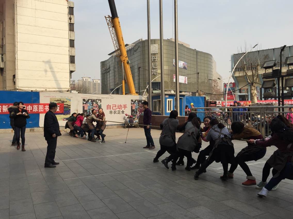 為慶!叭ぐ恕眿D女節(jié),豐富職工的精神文化生活,增強凝聚力和團體合作精神,中原圖書大廈工會分會于2015年3月8日下午3點,舉辦了女員工拔河比賽。 根據(jù)比賽前的隊伍分配原則,將所有參賽員工分為8隊,每隊10人。每支代表隊都顯示出飽滿的信心,齊心協(xié)力,勇爭第一。當(dāng)比賽的哨聲響起,參賽隊員們口中一起高呼著“一二,一二”,雙手緊握長繩,憋足了勁拼命往后拉,其他隊員自發(fā)組成啦啦隊為比賽隊員加油,號子聲、吶喊聲,此起彼伏。其中A1和A2隊的對決最為扣人心弦,雙方勢均力敵,比賽持續(xù)了將近三分鐘才決出勝負。而B1隊的實力有目共睹,在三局兩勝的層層比賽中,所向披靡、戰(zhàn)無不勝,毫無懸念地贏得了最終的勝利。 比賽結(jié)束以后,全體員工在QQ群中掀起了熱烈的討論,紛紛上傳抓拍到的精彩瞬間。同時大家也表示,這樣的活動不僅能有效釋放和緩解工作中的壓力,更能加強相互間的溝通了解,培養(yǎng)團隊精神和協(xié)作能力,希望以后能夠多多舉辦。 |