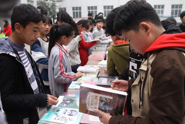 活動期間,該校學(xué)生積極參與、踴躍挑選,尤其在勵志、文學(xué)、歷史、益智等展位,隨處可見同學(xué)們認(rèn)真捧讀的情景。