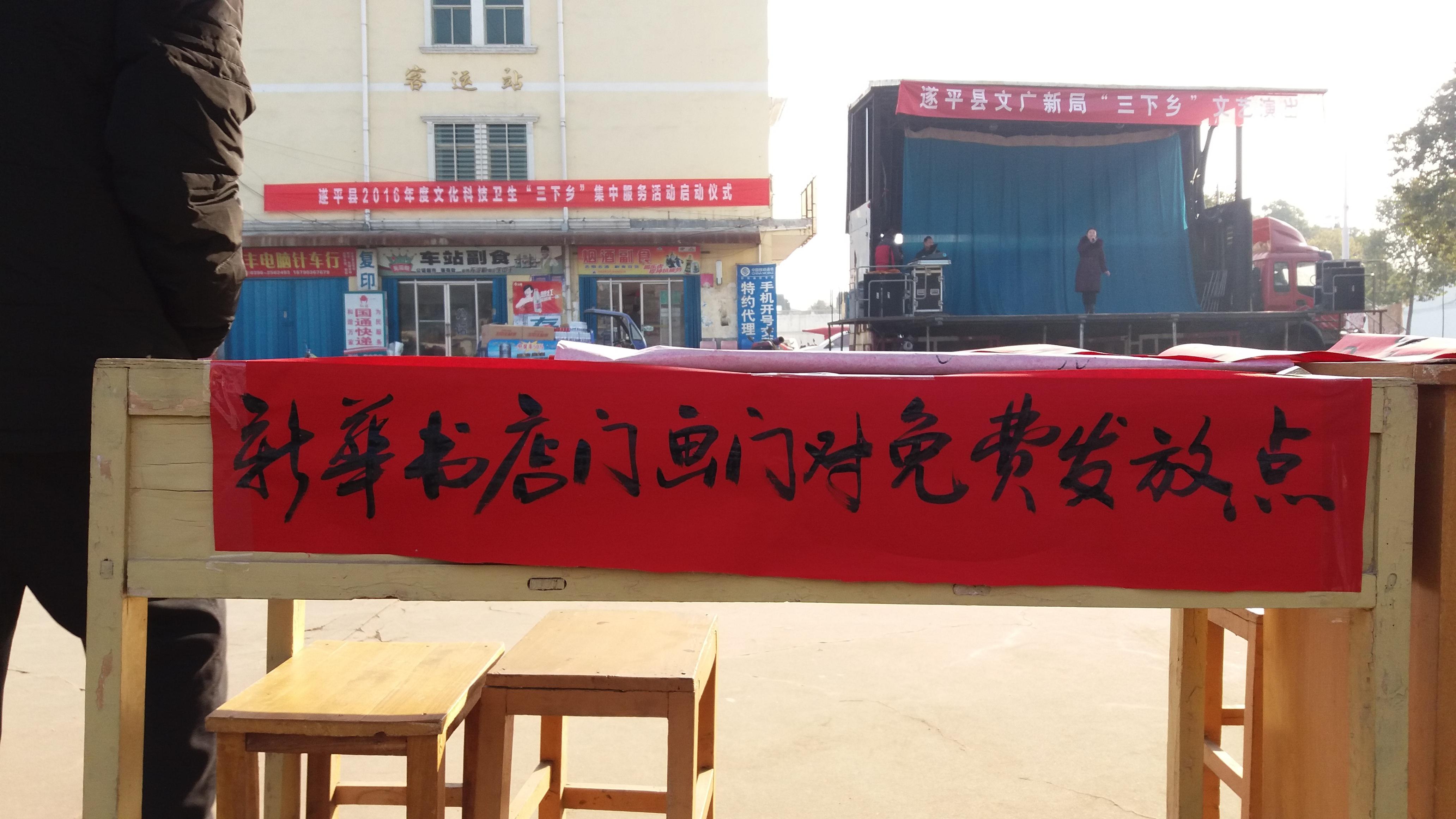 1月27上午,遂平縣店積極參加了縣委宣傳部統(tǒng)一組織的全縣“2016年文化科技衛(wèi)生三下鄉(xiāng)”活動(dòng),在車站鎮(zhèn)活動(dòng)現(xiàn)場(chǎng),為廣大群眾免費(fèi)發(fā)放春聯(lián)1000多幅,受到群眾的熱烈歡迎。