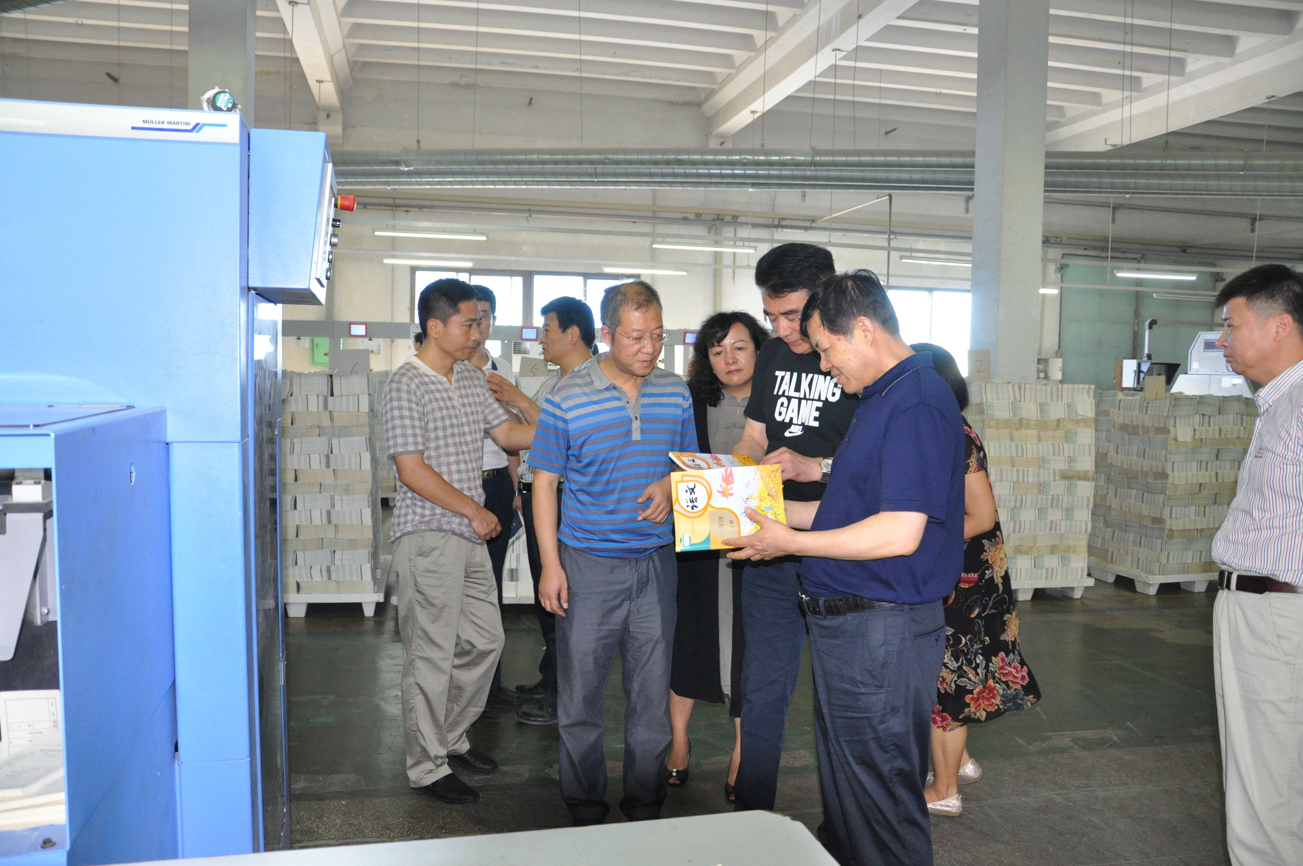 7月24日,出版集團(tuán)公司董事長、黨委書記李永臻,黨委委員郭豫生,中原大地傳媒股份公司總經(jīng)理、發(fā)行集團(tuán)總經(jīng)理林疆燕,中原大地傳媒股份公司副總經(jīng)理王慶國、教材出版中心主任王黎明等一行來到河南出版物流配送中心,視察指導(dǎo)發(fā)行集團(tuán)2017秋教材教輔發(fā)運工作。發(fā)行集團(tuán)副總經(jīng)理亓新民、工會主席任振茂等陪同視察。